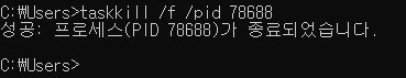 1. 8080포트 조회 ( 마지막에 있는 78688이 PID)