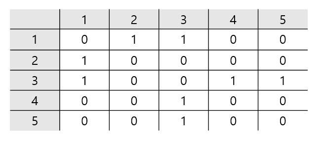 int[][] arr = {{0,1,1,0,0}, {1,0,0,0,0}, {1,0,0,1,1}, {0,0,1,0,0}, {0,0,1,0,0}};