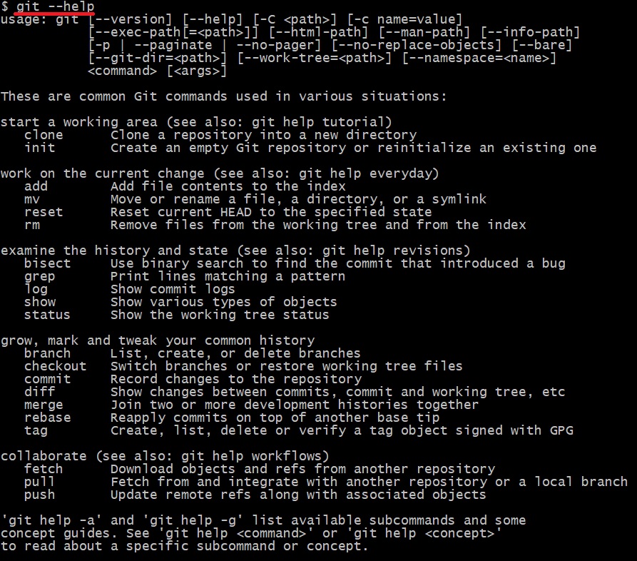 A. git --help 치면 아래 사진처럼 다 나옵니다.