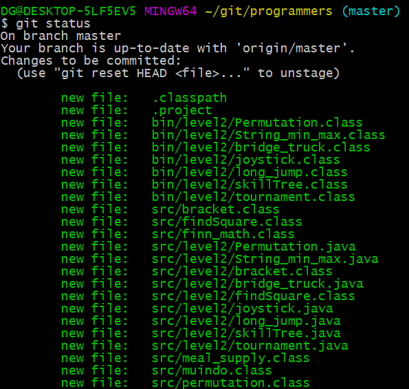 4. 복사 후 폴더로 들어간 다음 git status로 상태를 보면 다음과 같이 방금 변경 된 내용들이 출력 될 것이다.