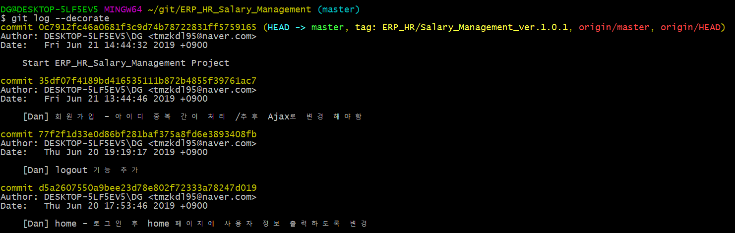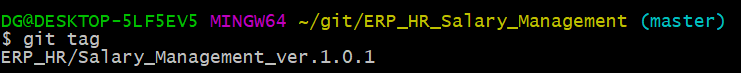 예제 사용 명령어 : git tag -a ERP_HR/Salary_Management_ver.1.0.1 -m "ERP_HR/Salary_Management_ver.1.0.1"