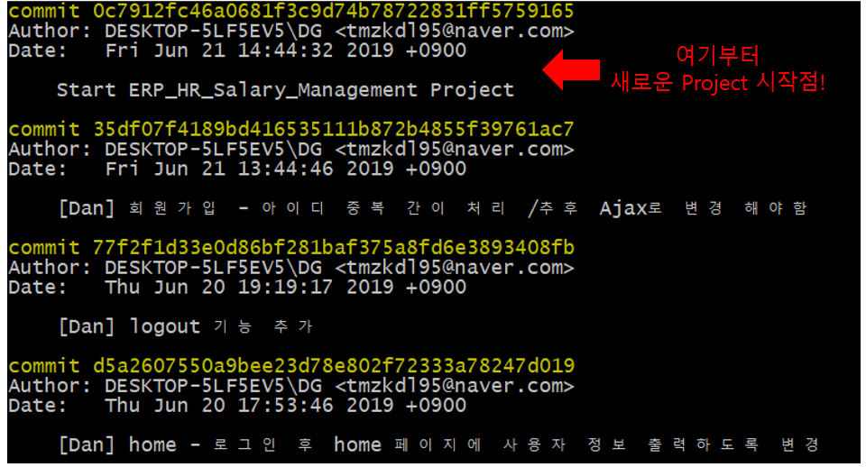 위 사진에 화살표로 표기 된 commit에 새로운 Project의 시작점이라고 표기하기 위해서 "ERP_HR/Salary_Management_ver.1.0.1"를 그어보겠습니다