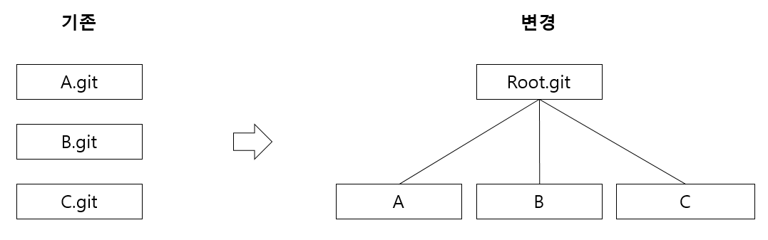 Plan B. 기존 git으로 관리하는건 그대로 두고, 상위 repository 생성 후 관리