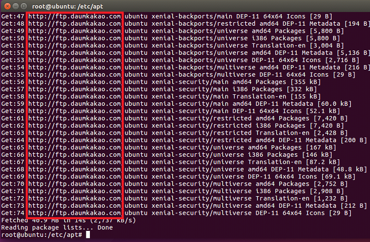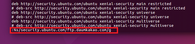 /# sed ‘s/us.archive.ubuntu.com/ftp.daumkakao.com/g’ sources.list