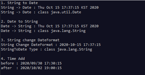 | String to Date , Date to String, Time add (0) | 2020.10.19 |
