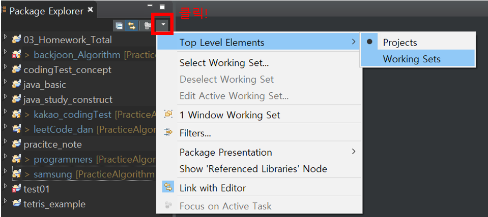 | Eclipse java Working Set 설정 (0) | 2020.03.07 |
