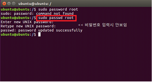 일단 처음 os를 설치 했으니, root 비밀번호 설정부터 합니다.